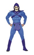 Return to your childhood with this excellent Skeletor Costume which consists of a blue muscle padded jumpsuit with hood, belt, boot covers, and Skeleton mask. If you were an 80s child then you will definitely remember the evil Skeletor! He was the arch enemy of He-Man and featured in the He-Man and the Masters of the Universe cartoon series which ran from 1983 to 1985. The fantasy series was extremely popular and saw him with his evil feline companion Panthor. Why not get your friends together and include our He-Man and She-Ra costumes as well! This official licensed Skeletor outfit includes jumpsuit with hood, belt, boot covers, and mask.