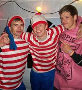 What a great combination of funny costumes from James! The Where's Wally outfits are a classic 80's inspired choice (we all remember those books!), and the Woopie Costume outfit is irreverent and fun at the same time- sure to make any party go with a 'blast'!!