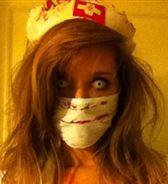 This Zombie Nurse Costume includes dress, hat, and mask.